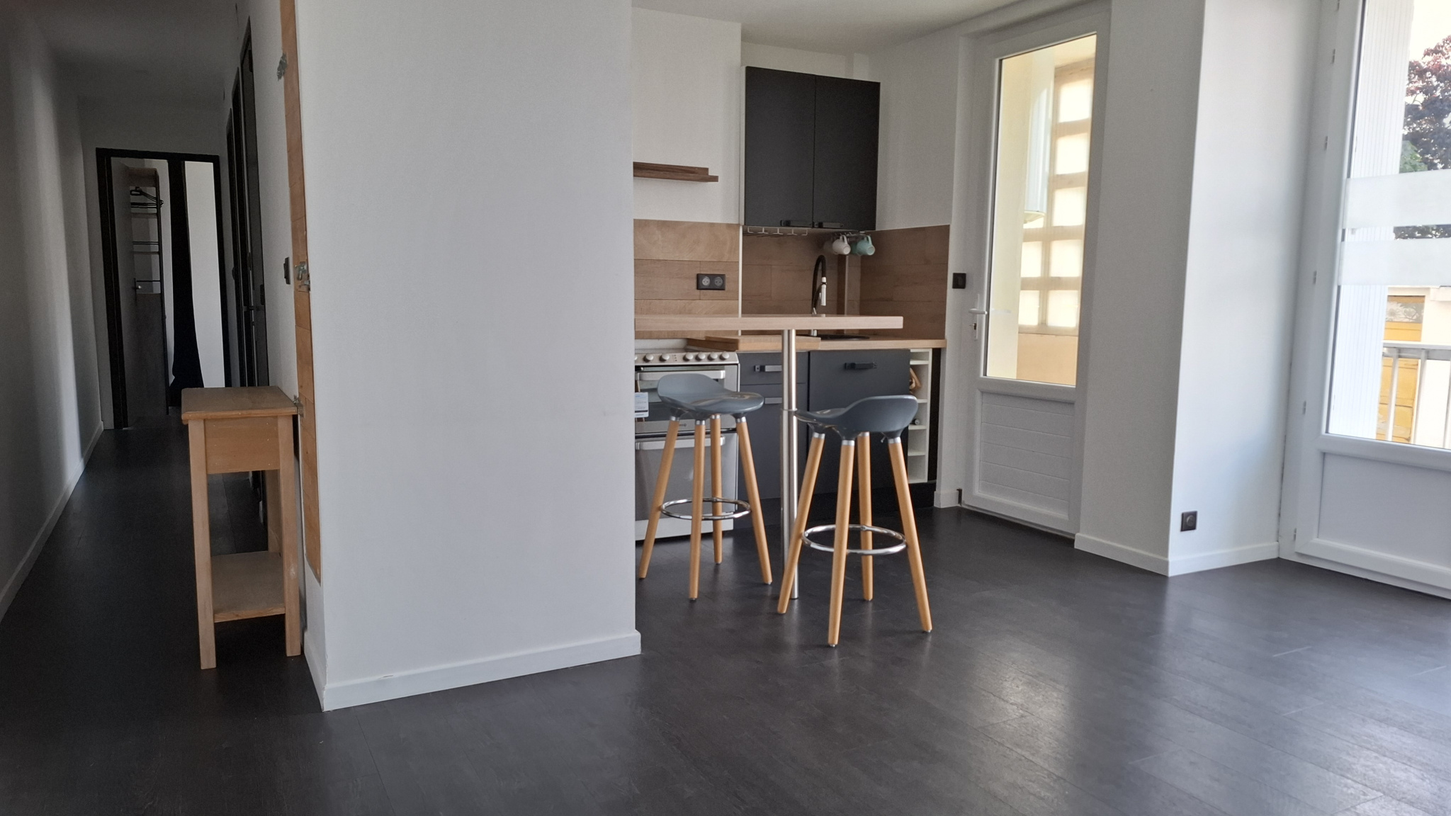 Appartement totalement rénové, comprenant une entrée sur la pièce de vie - salon / séjour / cuisine aménagée et équipée, unn couloir desservant un WC indépendant, une salle d'eau et deux chambres