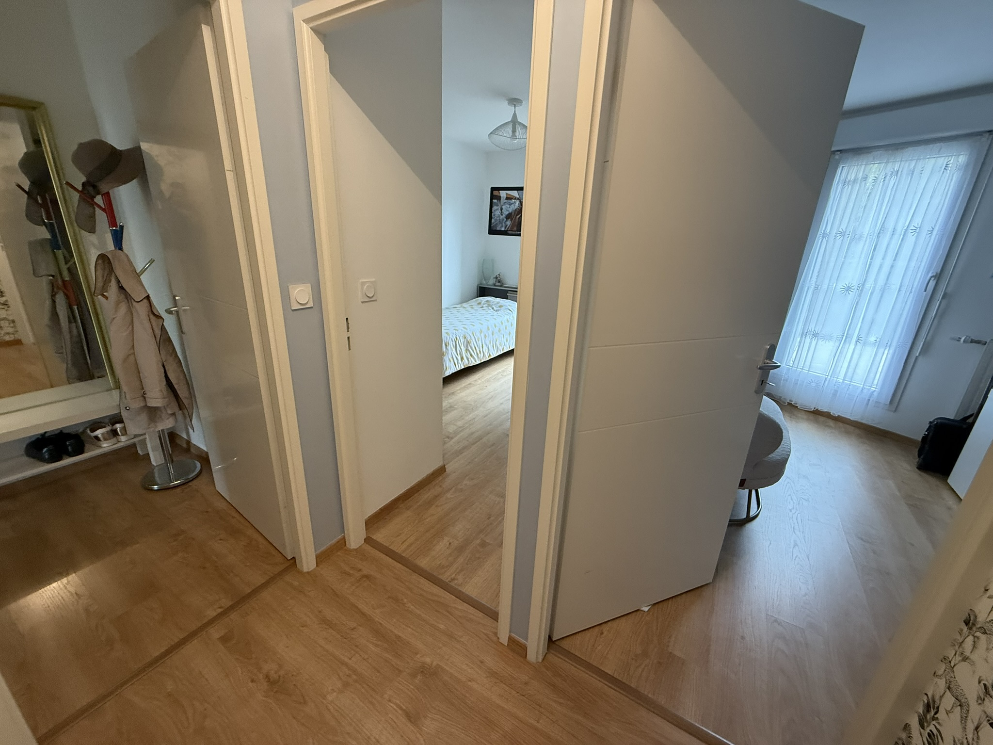 - un dégagement (2,30m2), 2 autres chambres (10,21m2 et 10,24m2) avec accès terrasse chacune, une salle de bains (4,63m2) (1 vasque-rangements, baignoire, sèche-serviettes) et un W.C indépendant (1,20m2).