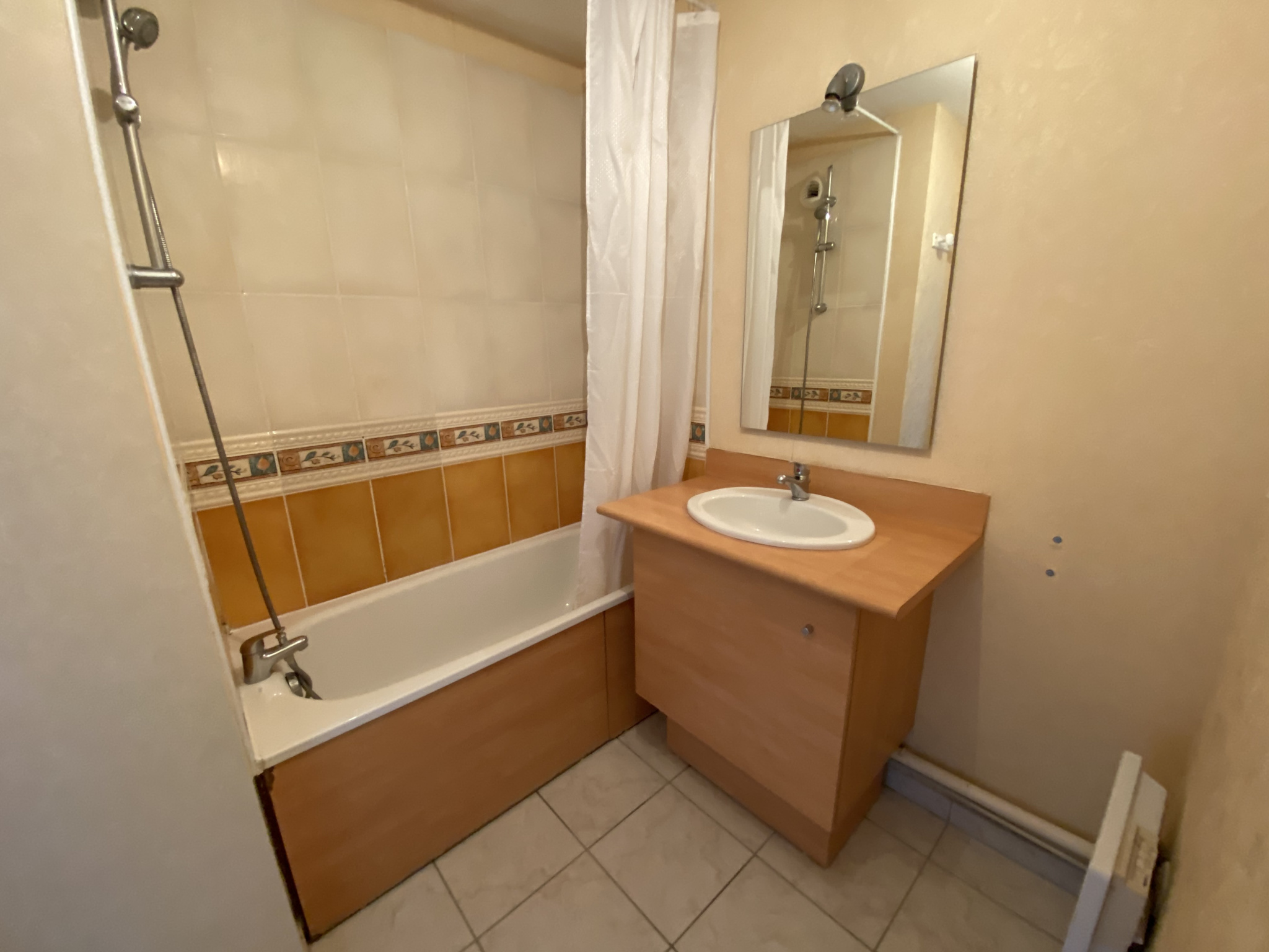 - une entrée avec placard (4,50m2), une pièce de vie (21m2) avec une cuisine indépendante (7,10m2) aménagée (hotte, évier, branchement lave-linge), une chambre sur parquet avec placard (10,50m2), une salle de bains avec placard (1 vasque-rangements, baignoire, sèche-serviette) (4m2) et un W.C séparé (0,92m2).