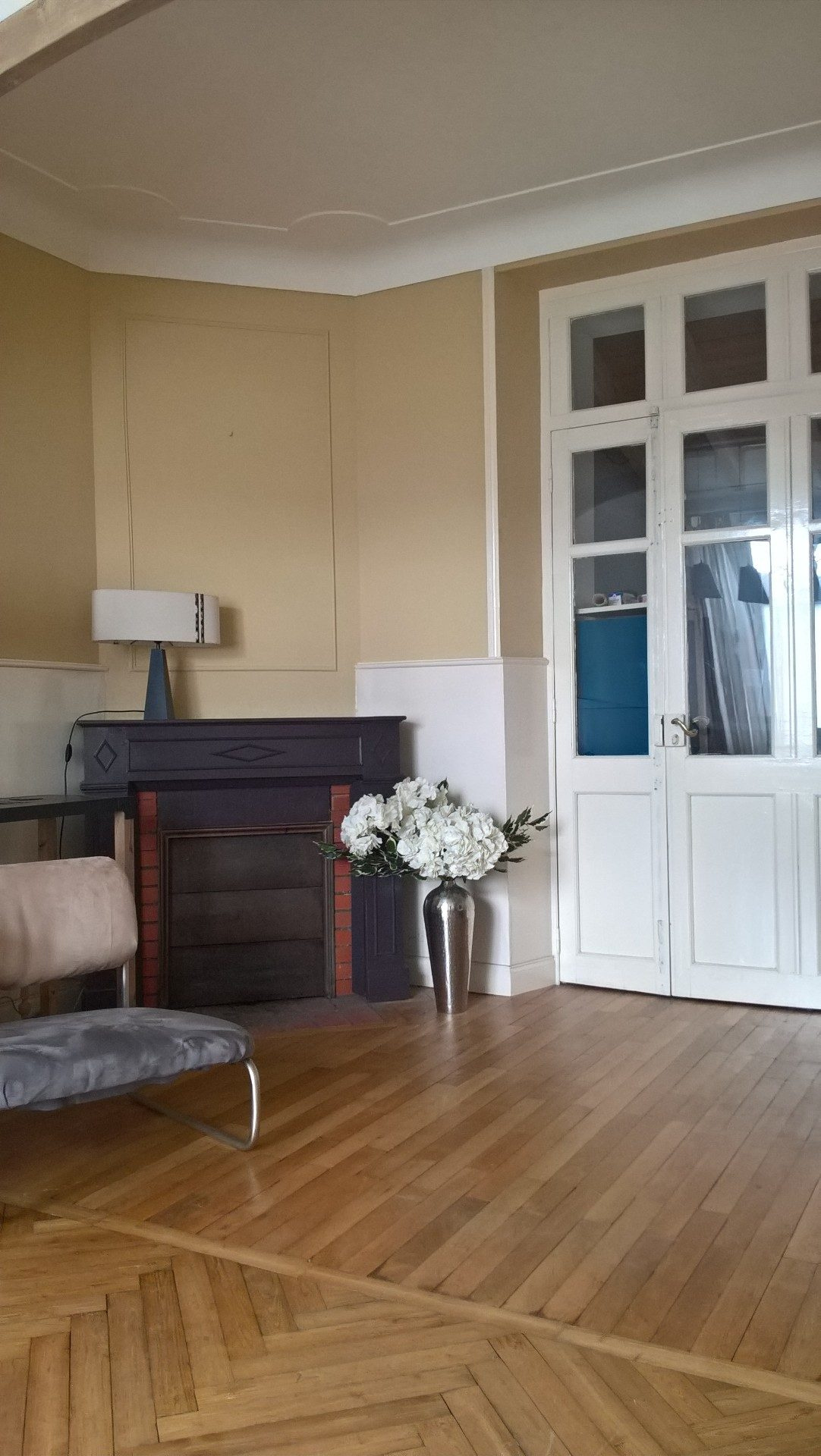 au RDC, une entrée, un WC séparé avec lave-mains, un grand salon séjour, une belle cuisine aménagée et équipée, une arrière cuisine (buanderie), une salle à manger sur parquet, un bureau
