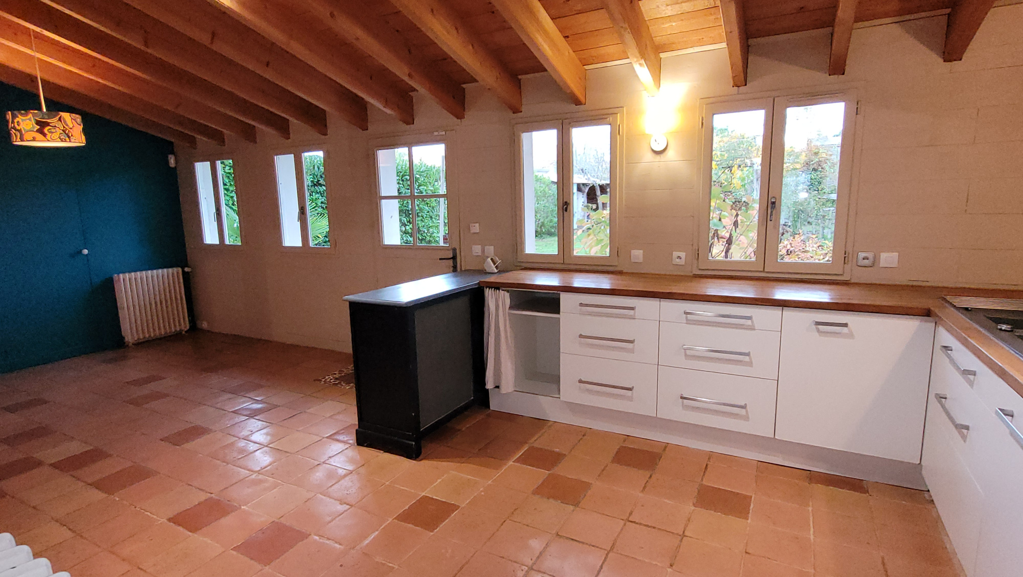 Prestations pleines de charme, huisseries alu/bois double vitrage, chauffage par chaudière gaz récente. 2 places de stationnement privatives à l'avant, un garage fermé avec porte électrique, une terrasse, une dépendance et un cabanon de jardin, un puits. DISPONIBLE au 01 décembre !