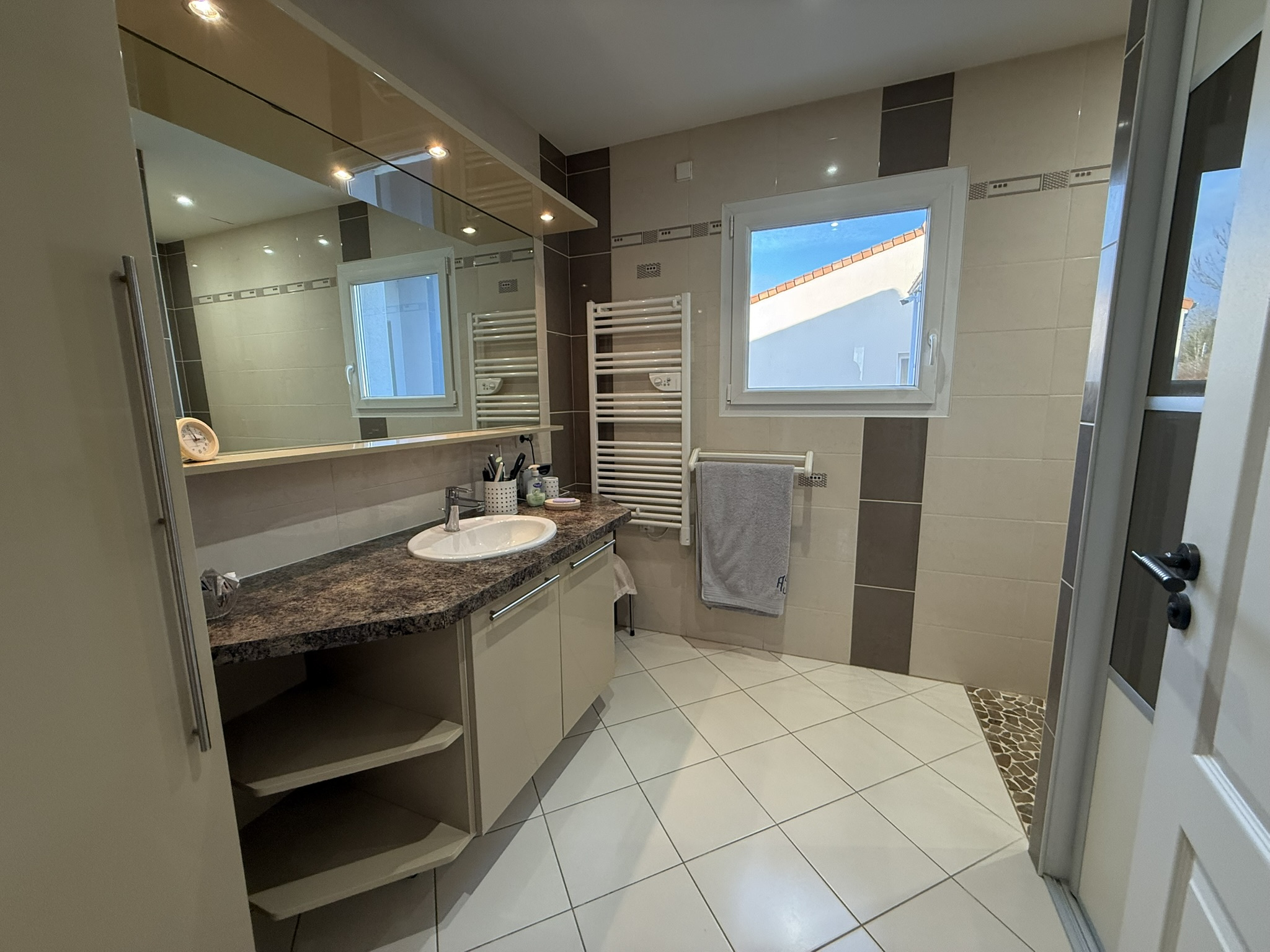 - une salle de bains (7,00m2) (1 vasque-rangements, douche italienne et placard).