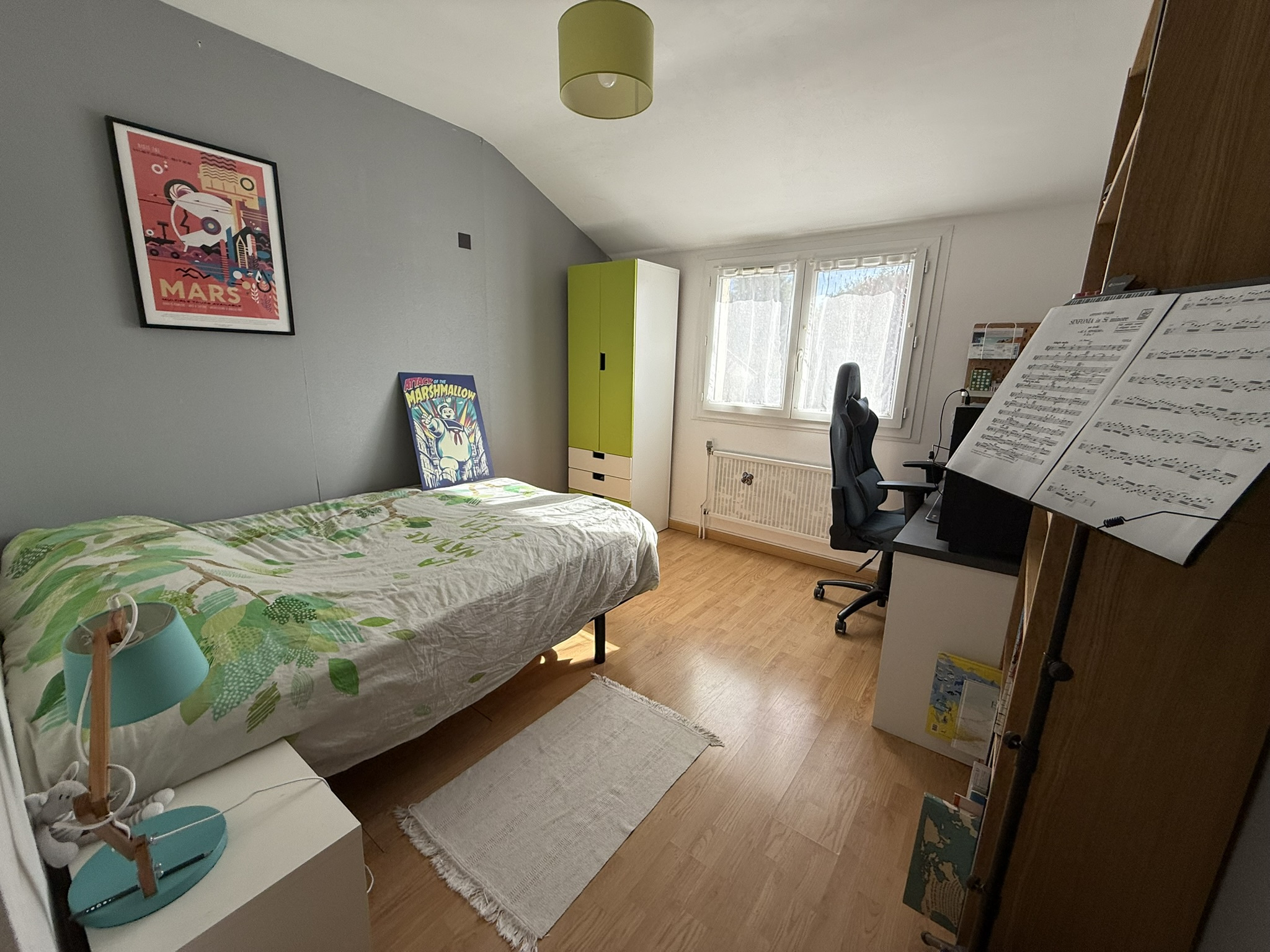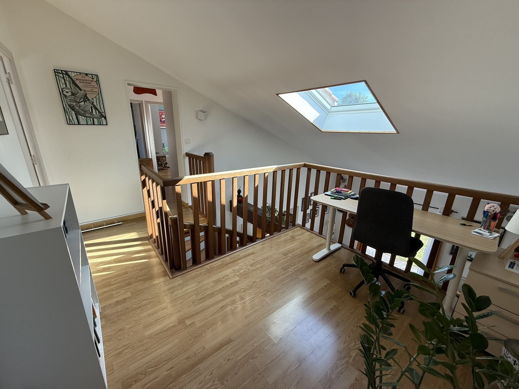 - une mezzanine (8,00m2) ou espace bureau, un couloir (4,30m2) desservant 4 chambres (9,30m2 / 10,90m2 / 13m2 et 13,45m2) dont 2 avec placard intégré.