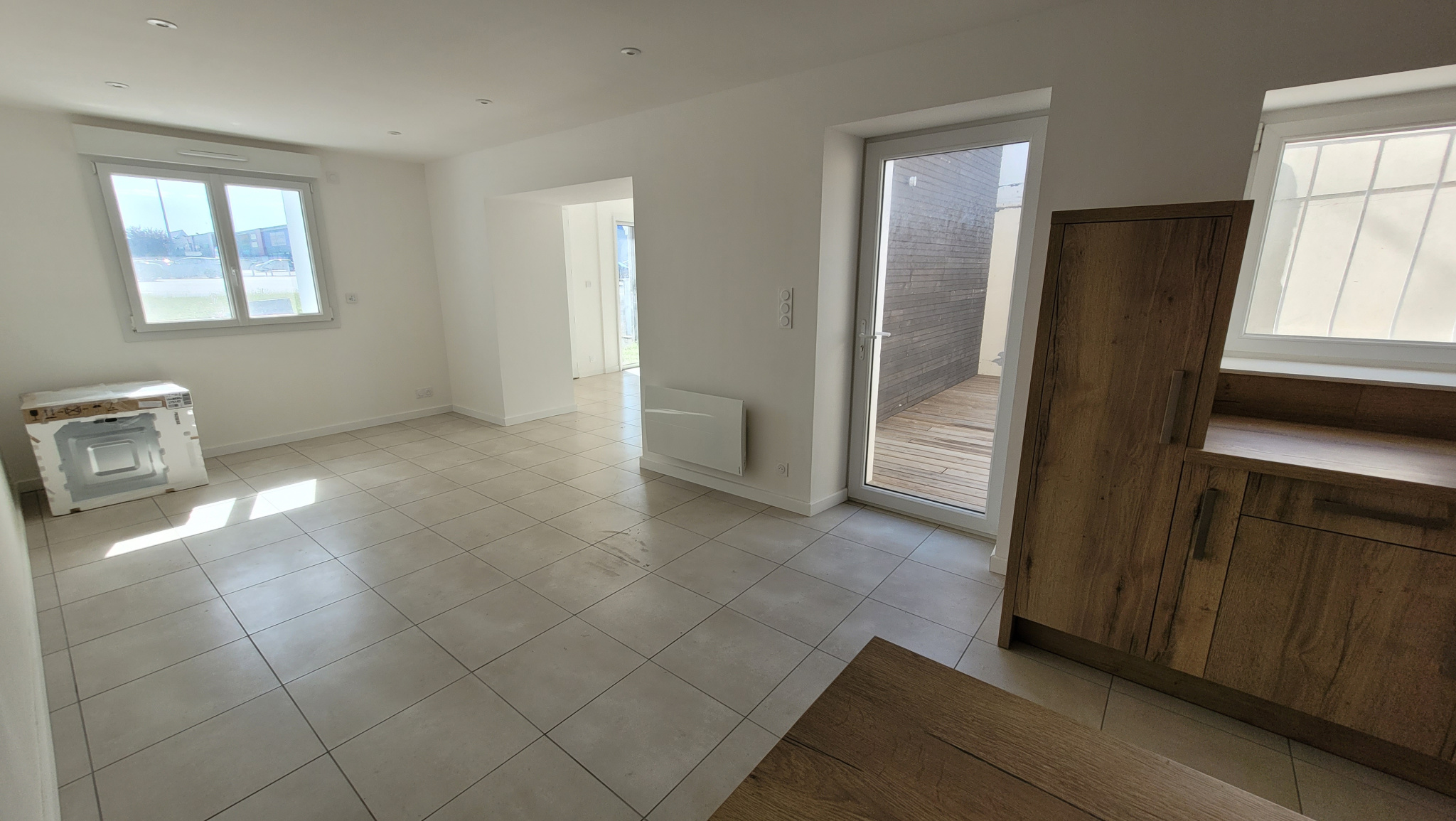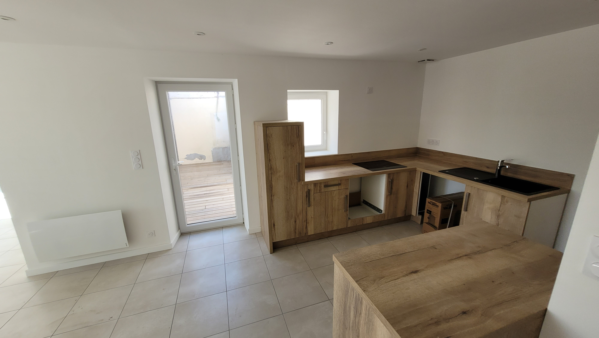 Maison / Appartement rénovée en Juin 2023 (1ère location). Comprenant : - 4 grandes chambres avec placard- 2 salles d'eau avec WC (étage et RDC) - un salon séjour ouvert sur une cuisine aménagée et équipée - une buanderie (au RDC) et emplacement machines - Toutes les chambres sont à l'étage. terrasse bois au RDC.