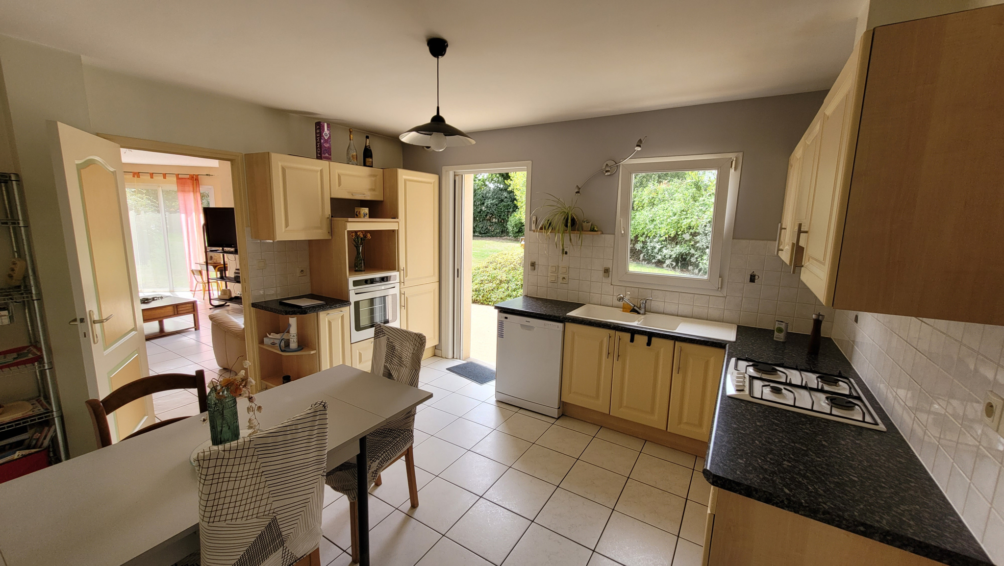 L'agence Vimmo vous propose cette belle maison familiale de 160 m2 avec 4 chambres et 1 bureau (ou chambre), dans un environnement calme et résidentiel de Vertou. Cette maison est composée ainsi : Au RDC, une entrée avec placard, un WC séparé avec lave-mains, un salon séjour (42m2), un bureau (ou chambre), une chambre parentale avec une salle d'eau attenante, une cuisine aménagée, une arrière cuisine, une buanderie et un garage double (portes électriques) avec grenier. A l'étage, 3 chambres, palier, une salle de bains et un WC séparé.