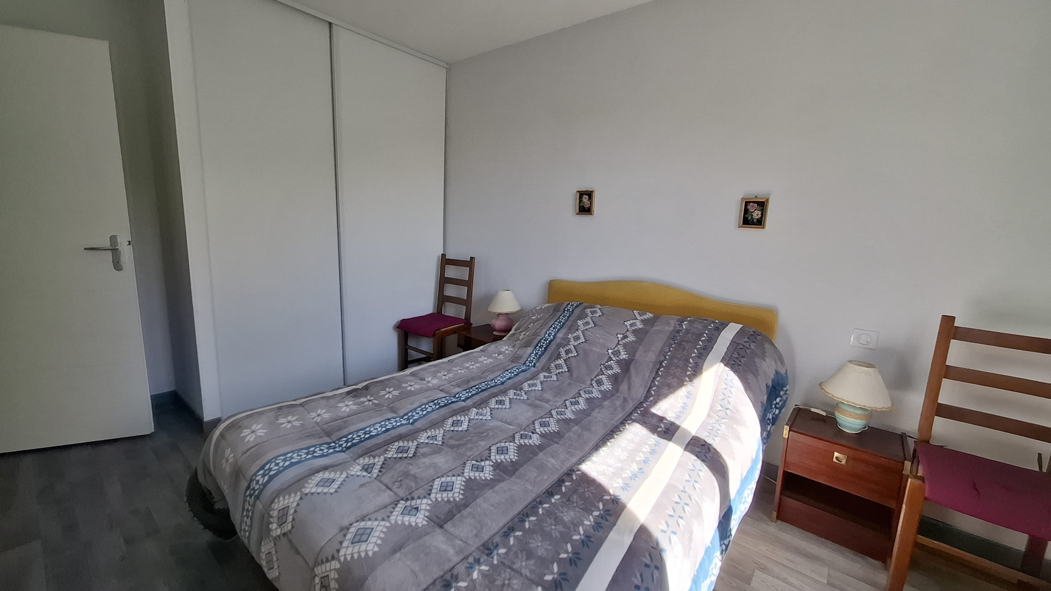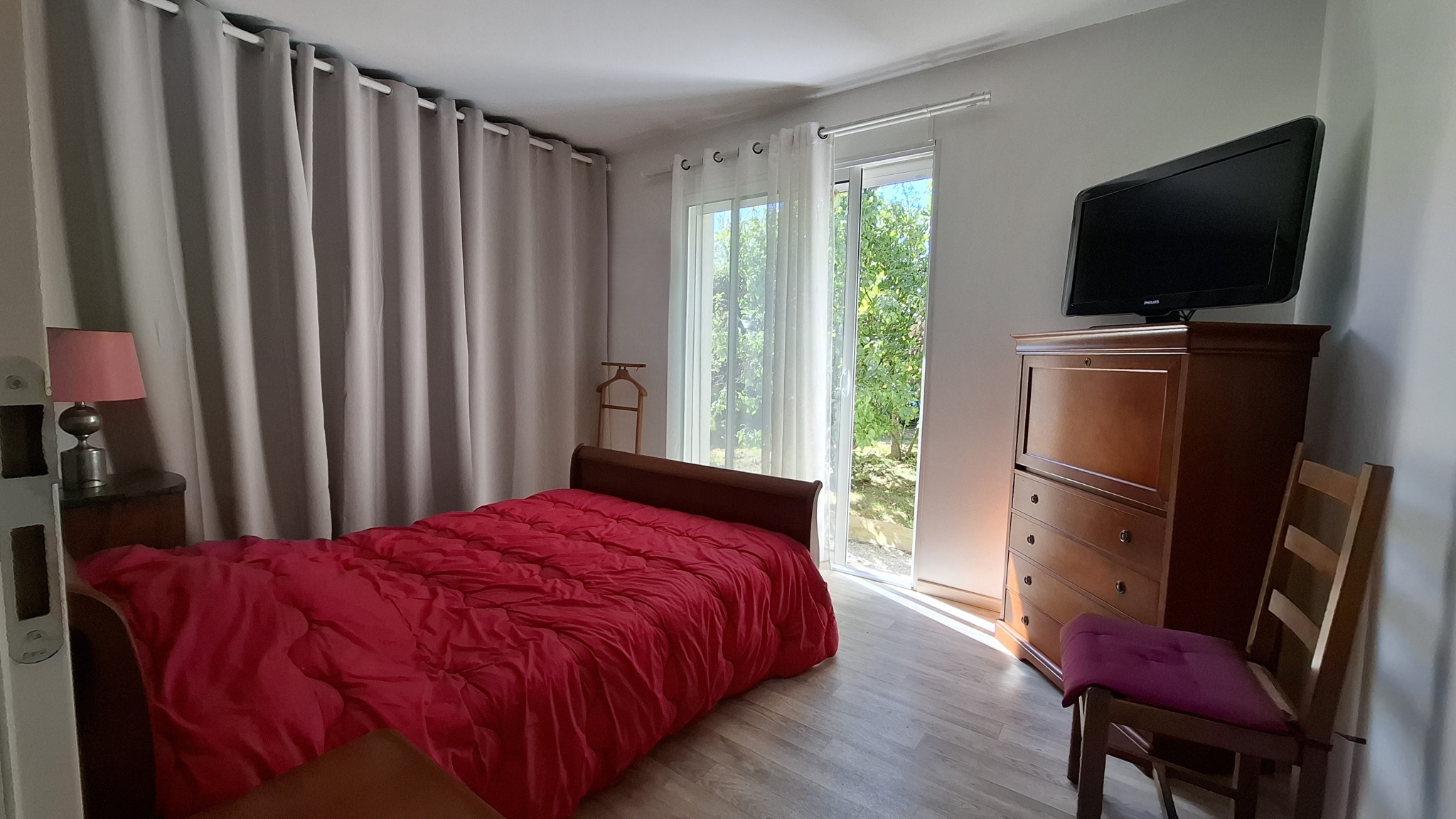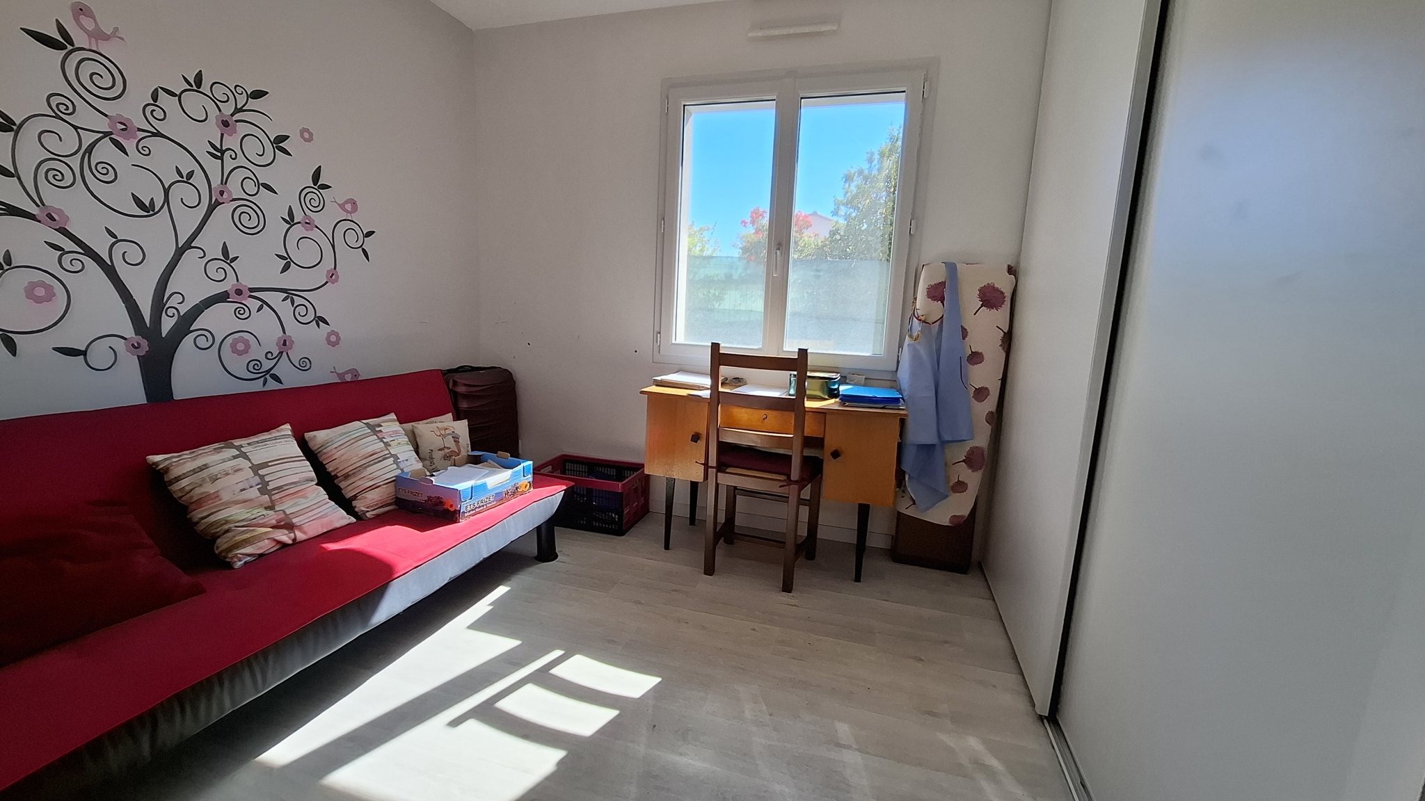 Côté nuit fermé, on trouve trois chambres avec placards dont une donnant sur le jardin avec une baie vitrée, une salle de bains / douche