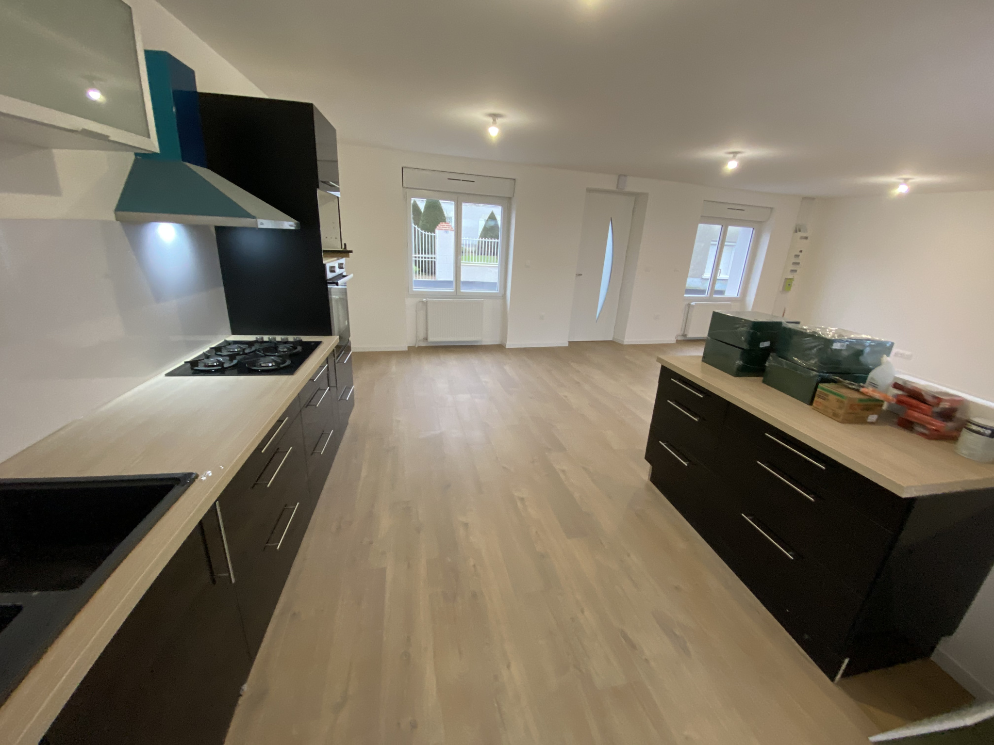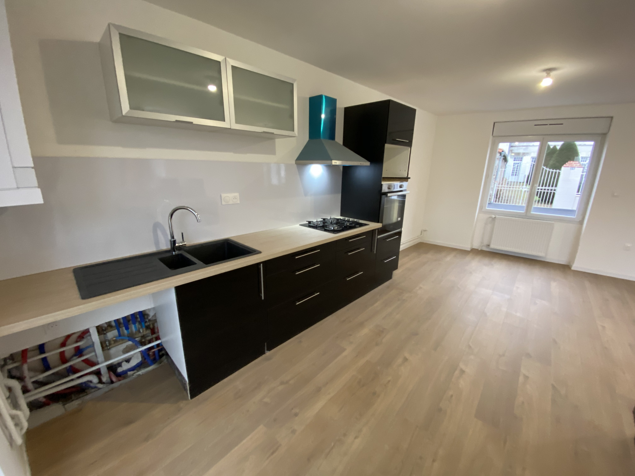 - RARE sur le secteur - L'agence Vimmo vous propose cette maison entierement rénovée avec goût, à proximité immédiate des commerces et des écoles, comprenant au RDC une entrée desservant une belle pièce de vie lumineuse (41,80m2) avec une cuisine ouverte aménagée-équipée (plaque de cuisson, hotte, évier, four, emplacement lave-vaisselle), un W.C séparé avec branchements lave-linge (1,85m2).