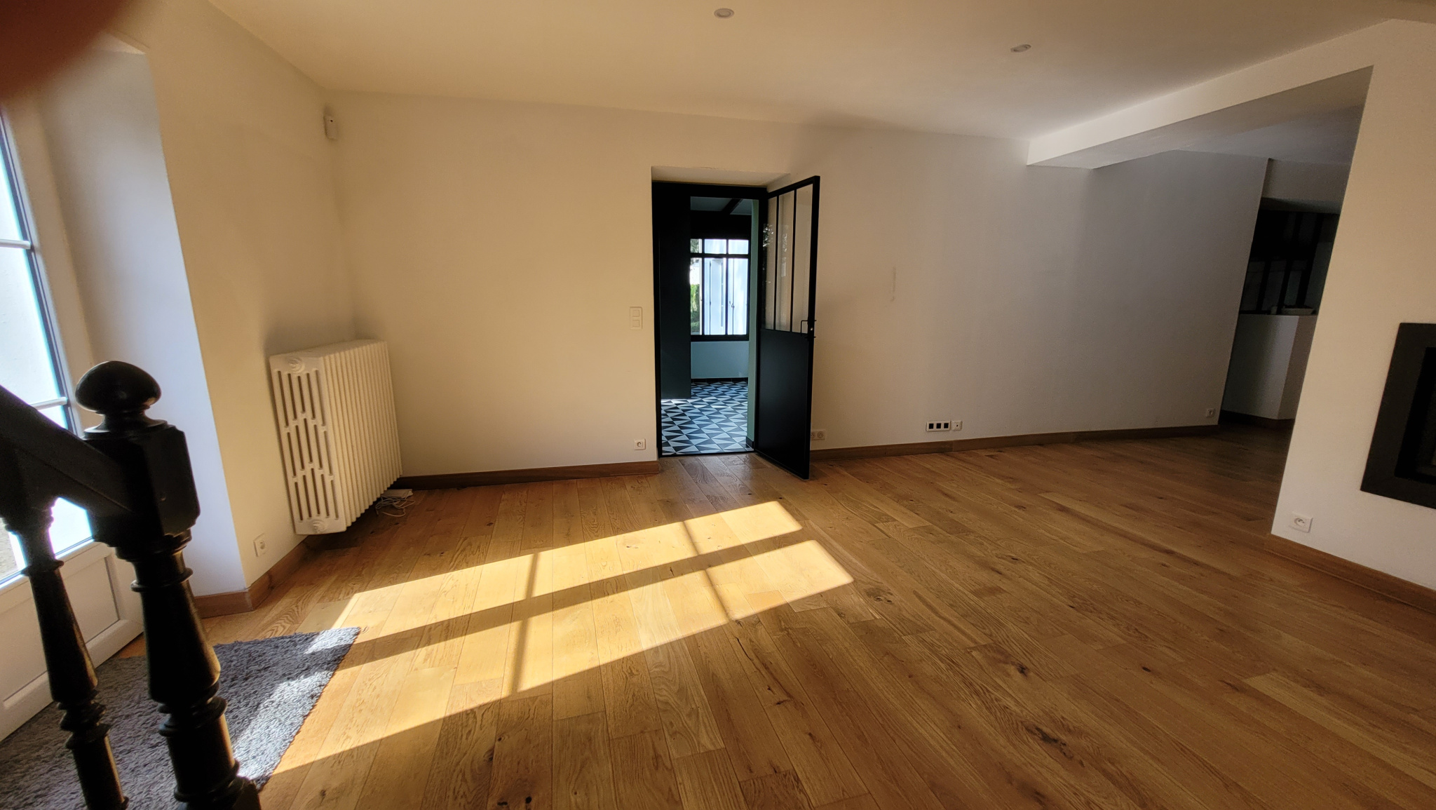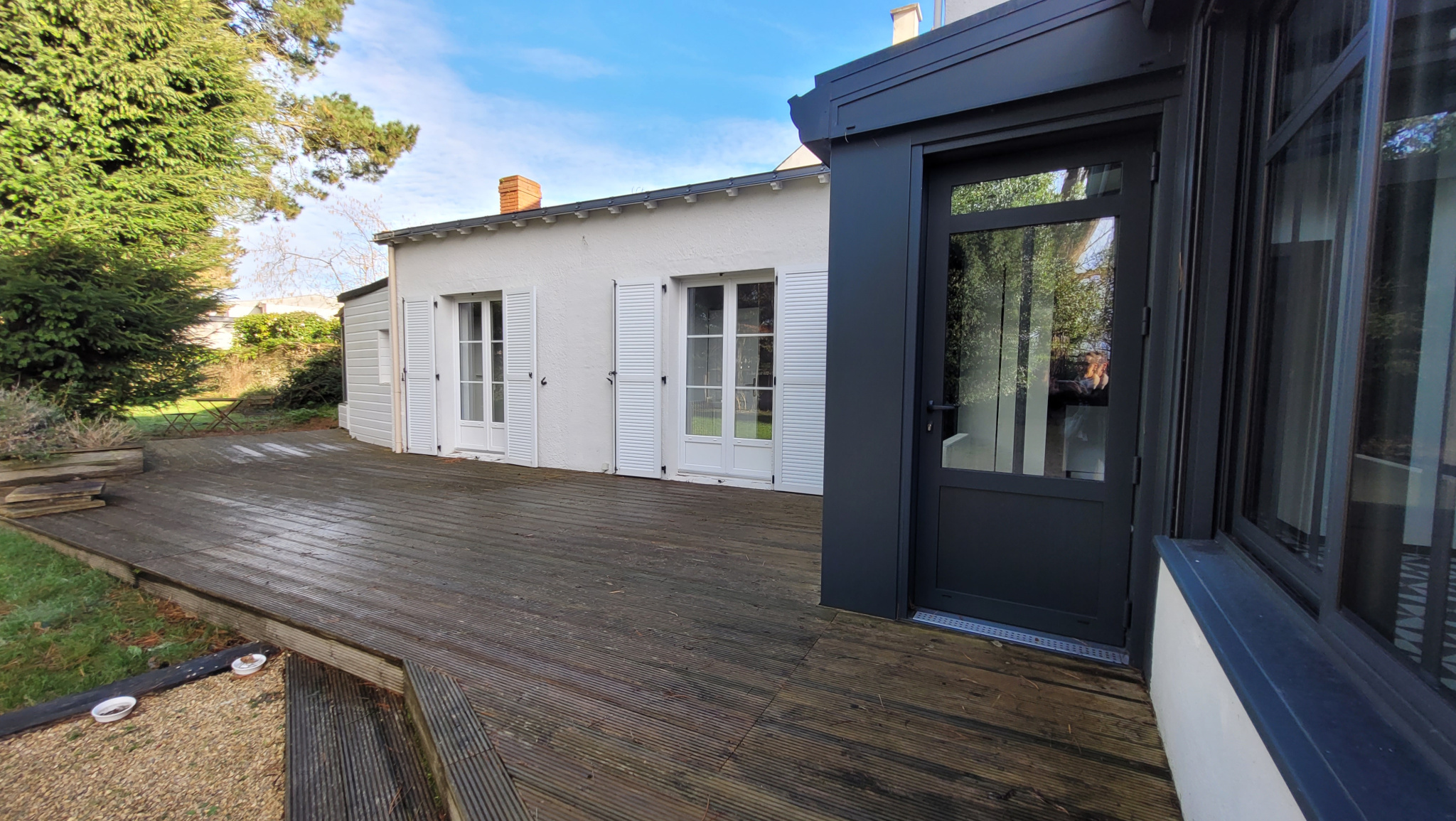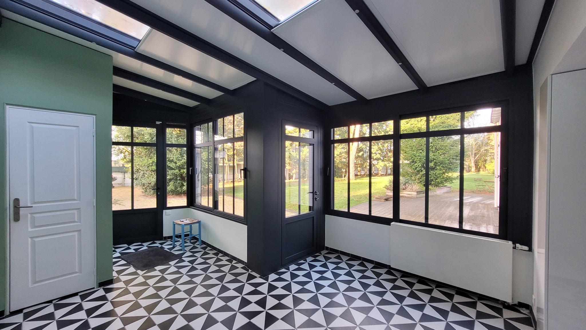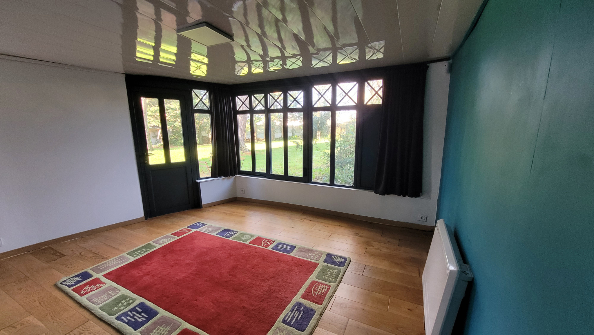 Au rez de chaussée, l'entrée se fait par une très belle véranda de 2021 (toujours sous décénnale) orientée ouest, et baignée de lumière tout au long de la journée, devenu espace dinatoire pour profiter du très beau jardin (l'été vous pourrez profiter du spectacle des écureuils)